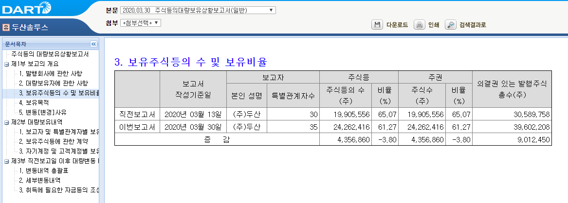 (주)두산과 박정원 회장 등 특수관계인 지분 지분을 확보해둔 상태라고 합니다.